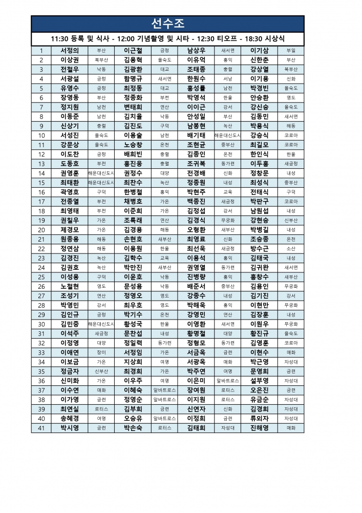 11:30 등록 및 식사 - 12:00 기념촬영 및 시타 -