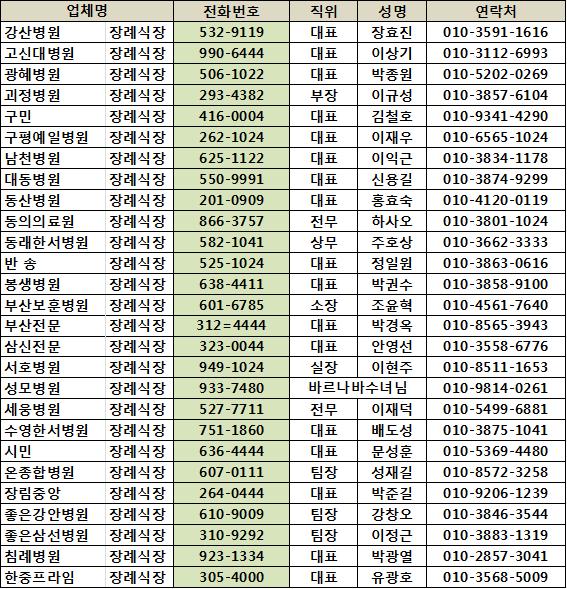 별첨. 한국장례협회 부산지부 협회 등록 회원 명부