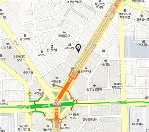 오시는길 : 지하철 1호선 서면역 15번 출구 기아자동차 대리점 건물