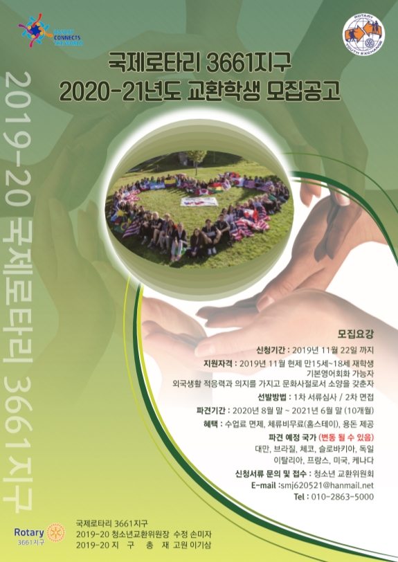 국제로타리 3661지구 2020-21년도 청소년 교환학생 모집이 시작되었습니다.