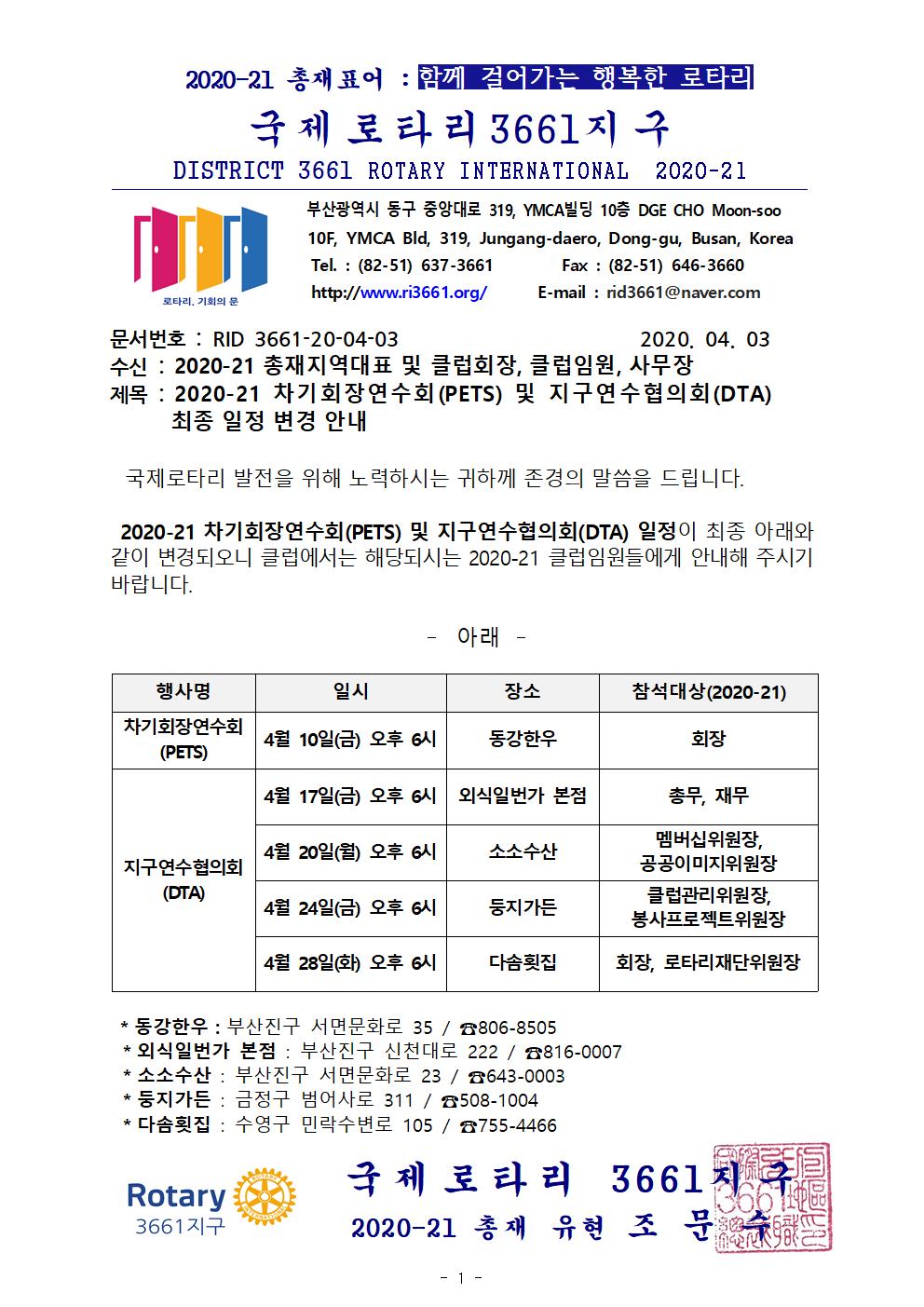 2020-21 차기회장연수회 및 지구연수협의회 최종 일정 안내의 건