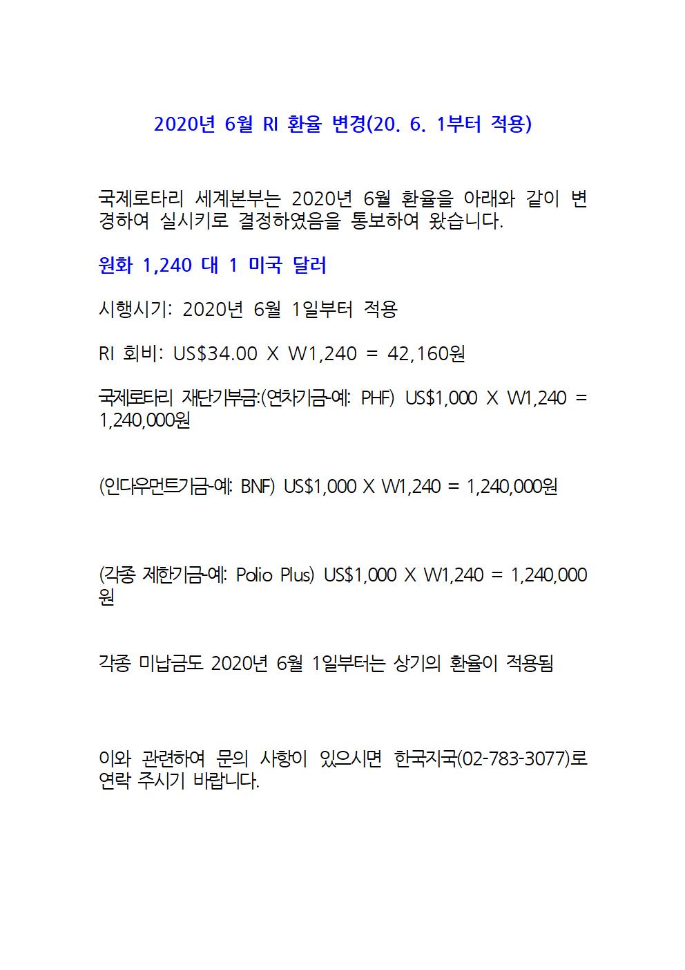 2020년 6월 RI 환율 변경 (20.6.1부터 적용)