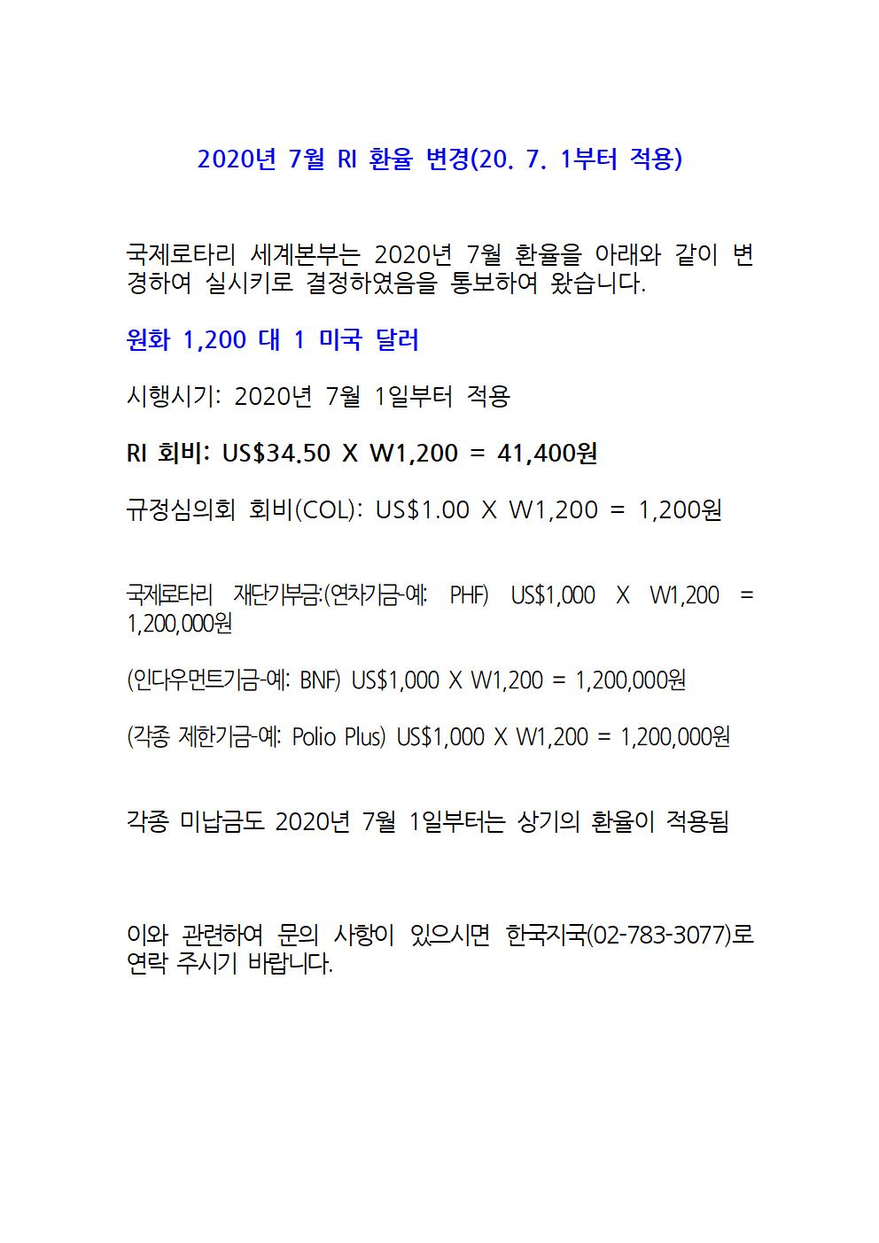 2020년 7월 RI 환율 변경 (20.7.1부터 적용)