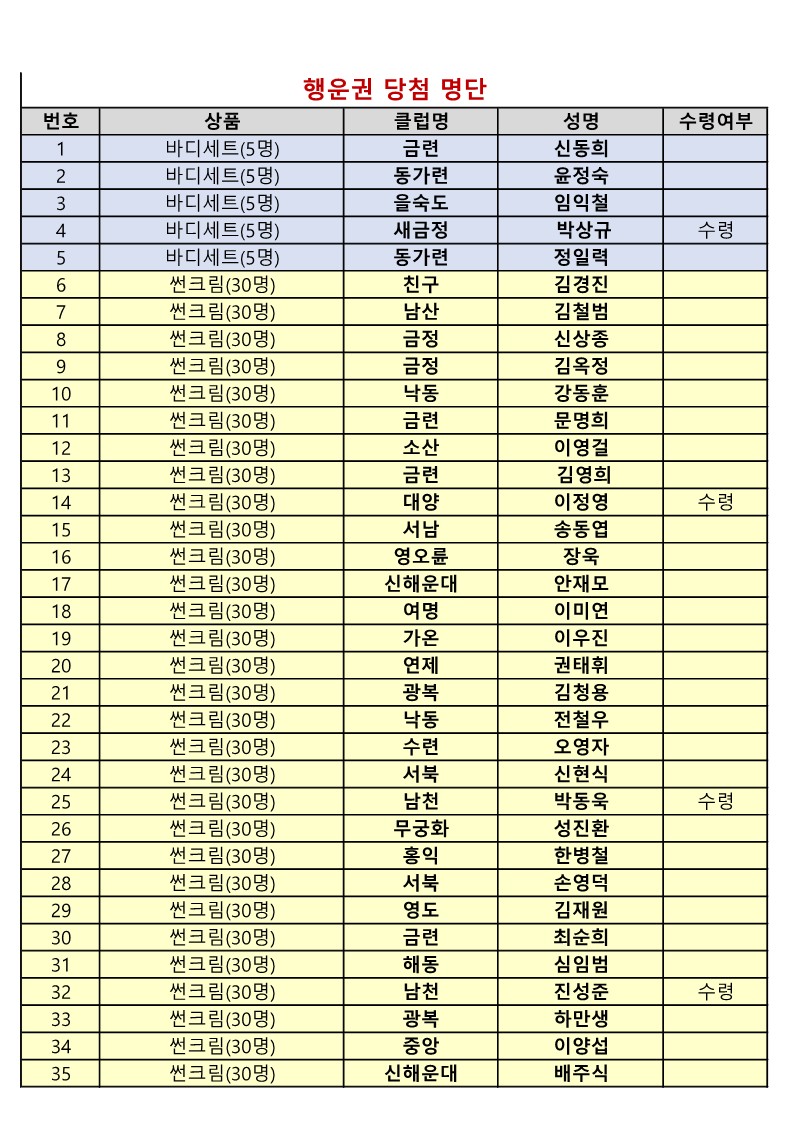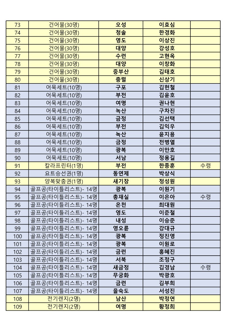 골프대회 수상자 및 행운권 당첨자는 지구회관에서 싸인과 함께 수령하시기 바랍니다.