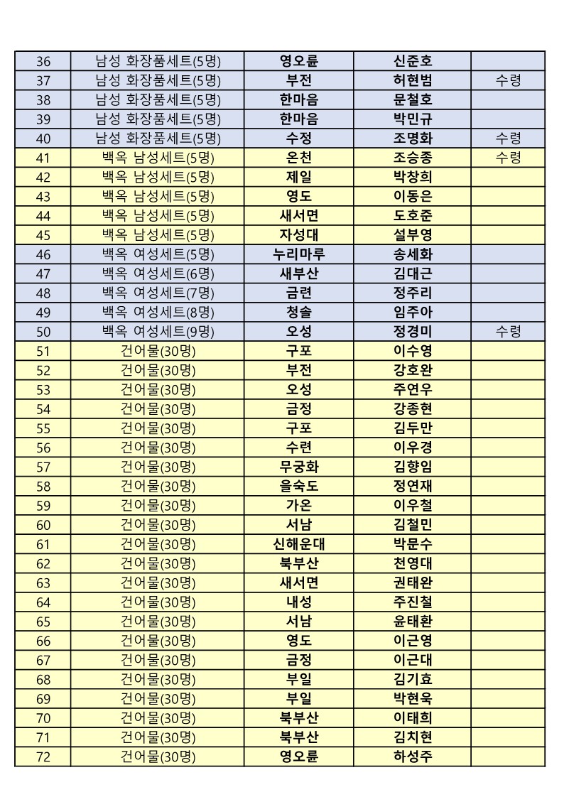 아울러 어묵세트와 건어물세트는 보관상 주소를 남겨주시면 택배로 보내드리겠습니다.