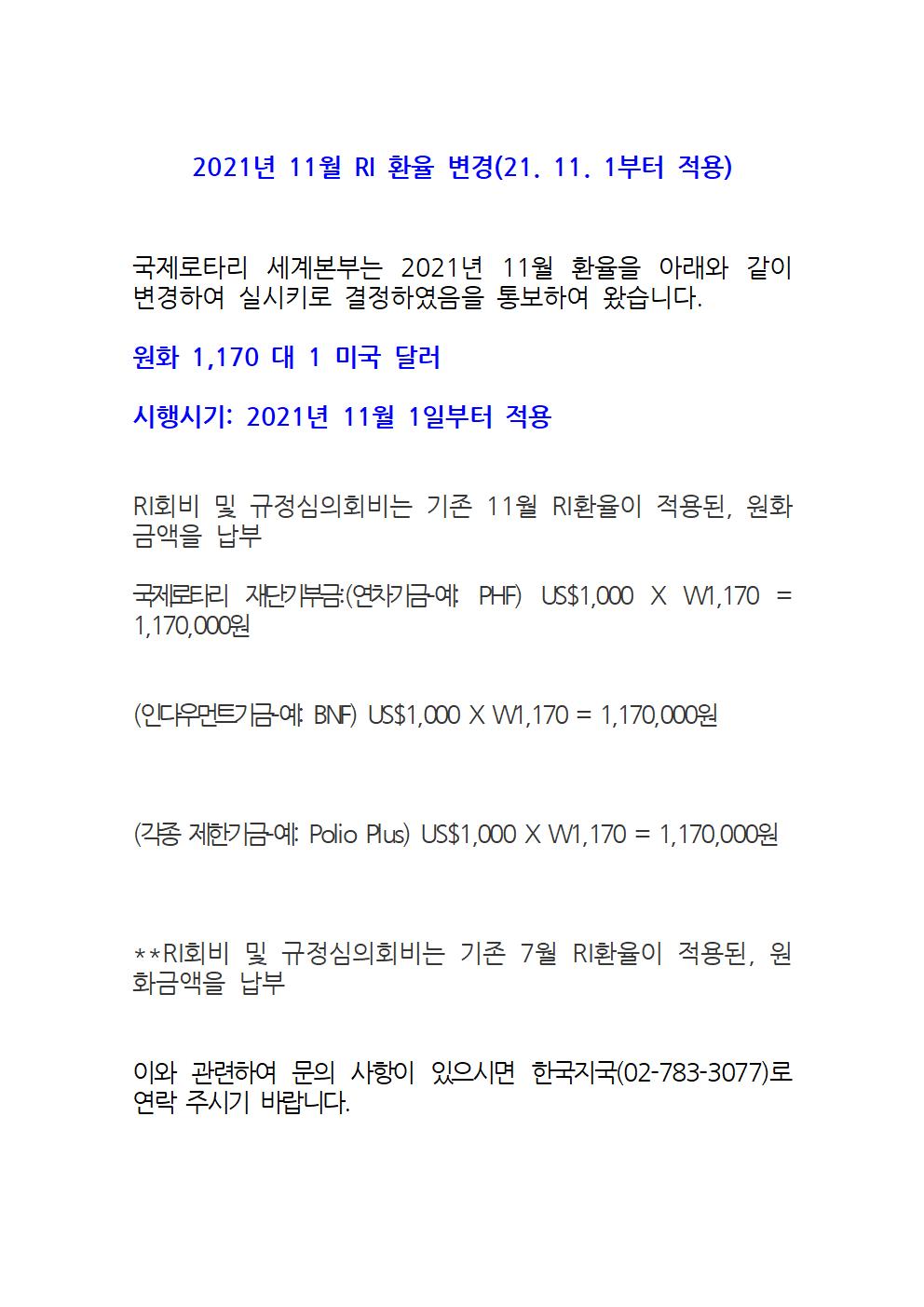 2021년 11월 RI 환율 변경 (21.11.01부터 적용)