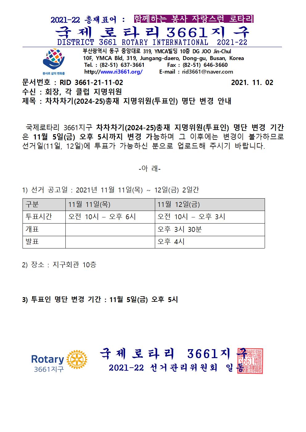차차차기 총재 지명위원(투표인) 명단 변경 안내