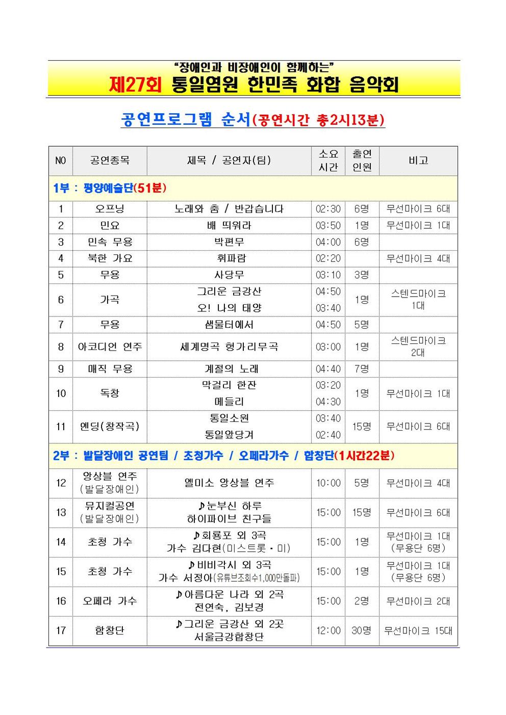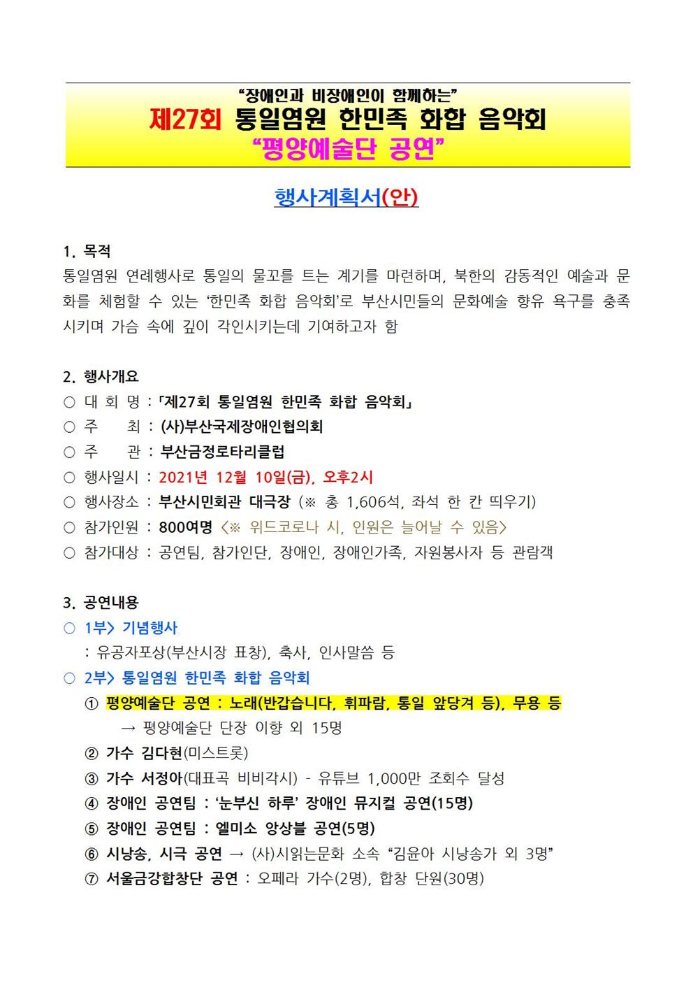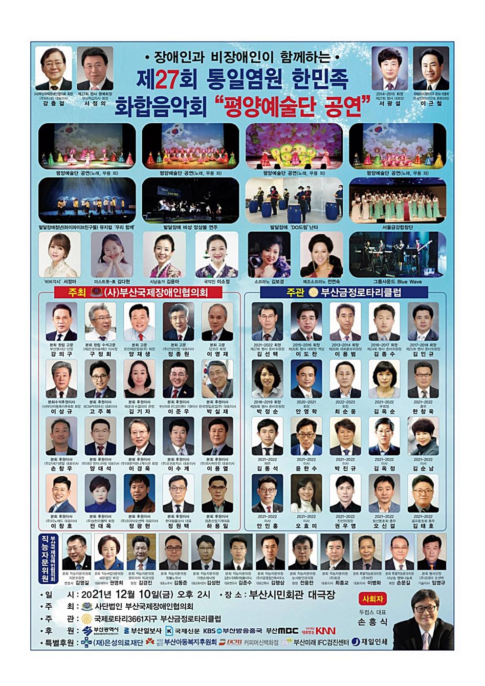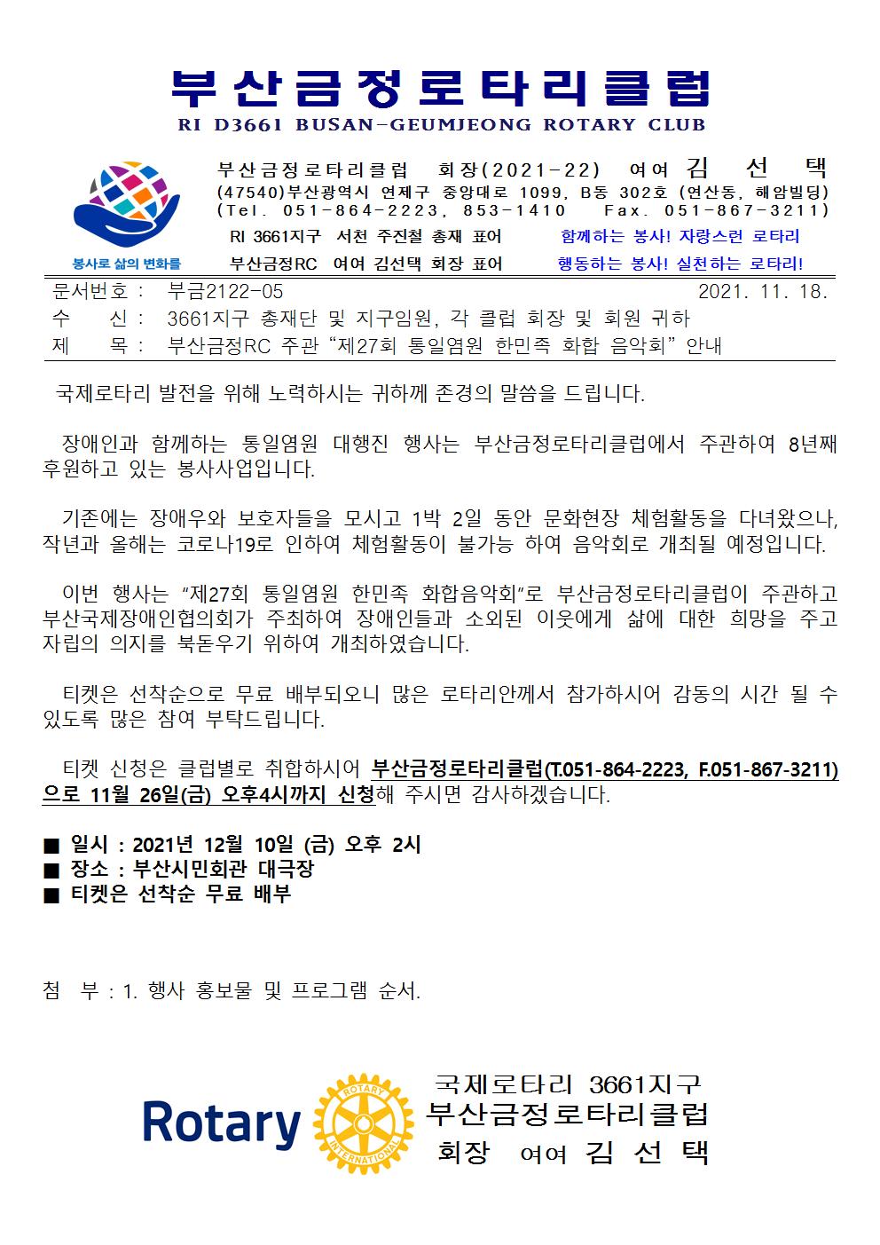금정RC)제27회 통일염원 한민족 회합 음악회 개최 안내