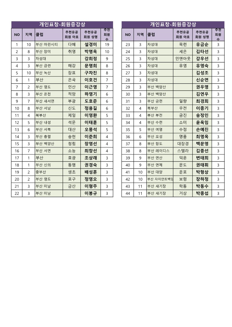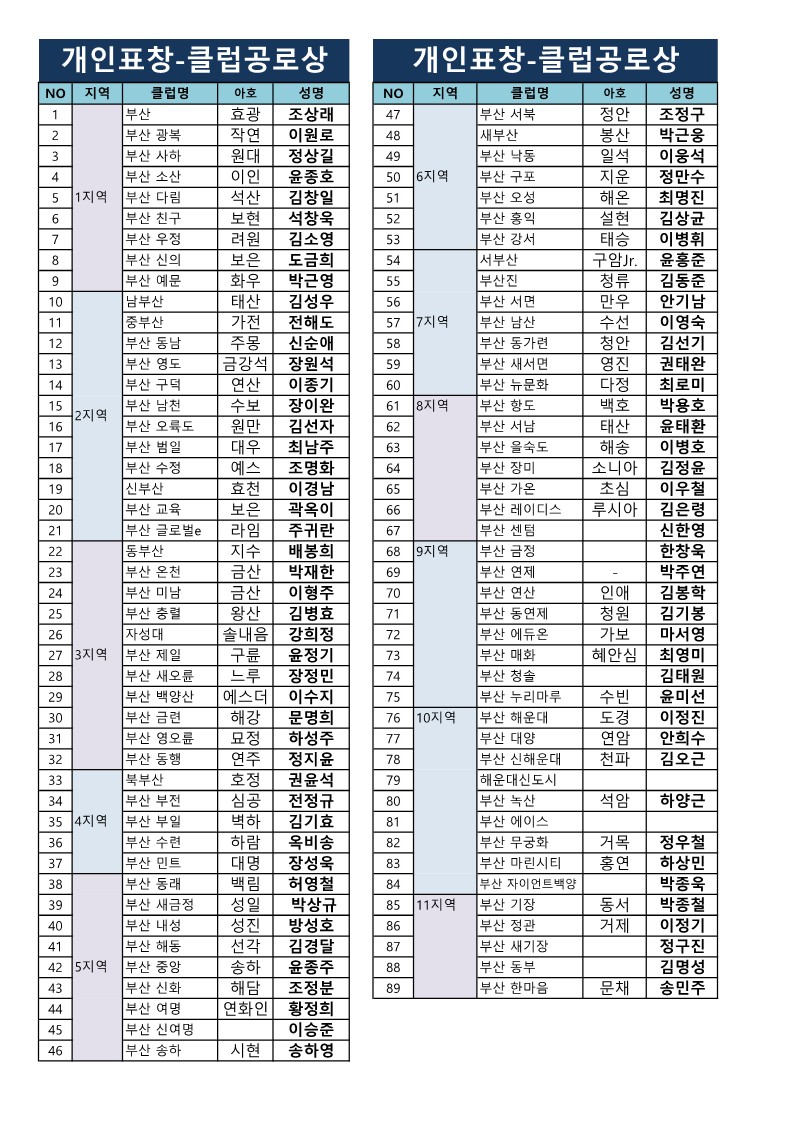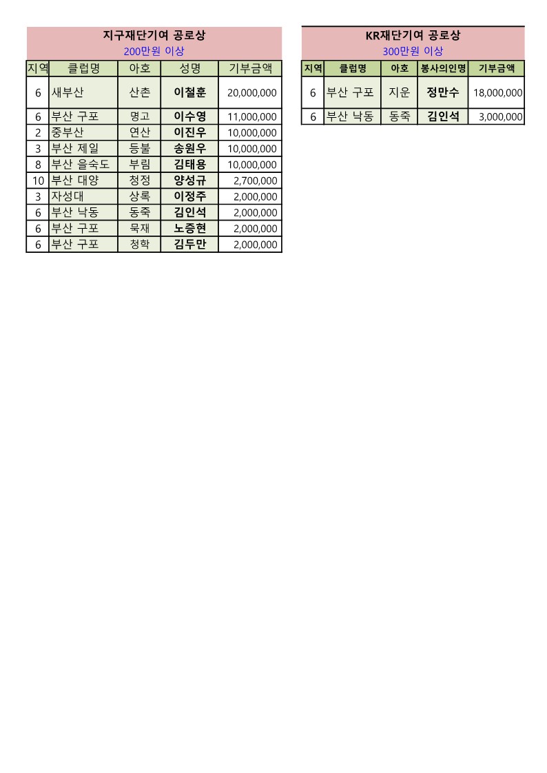 지구대회 개인표창 명단 1-공로상,개참상,회원증강,재단