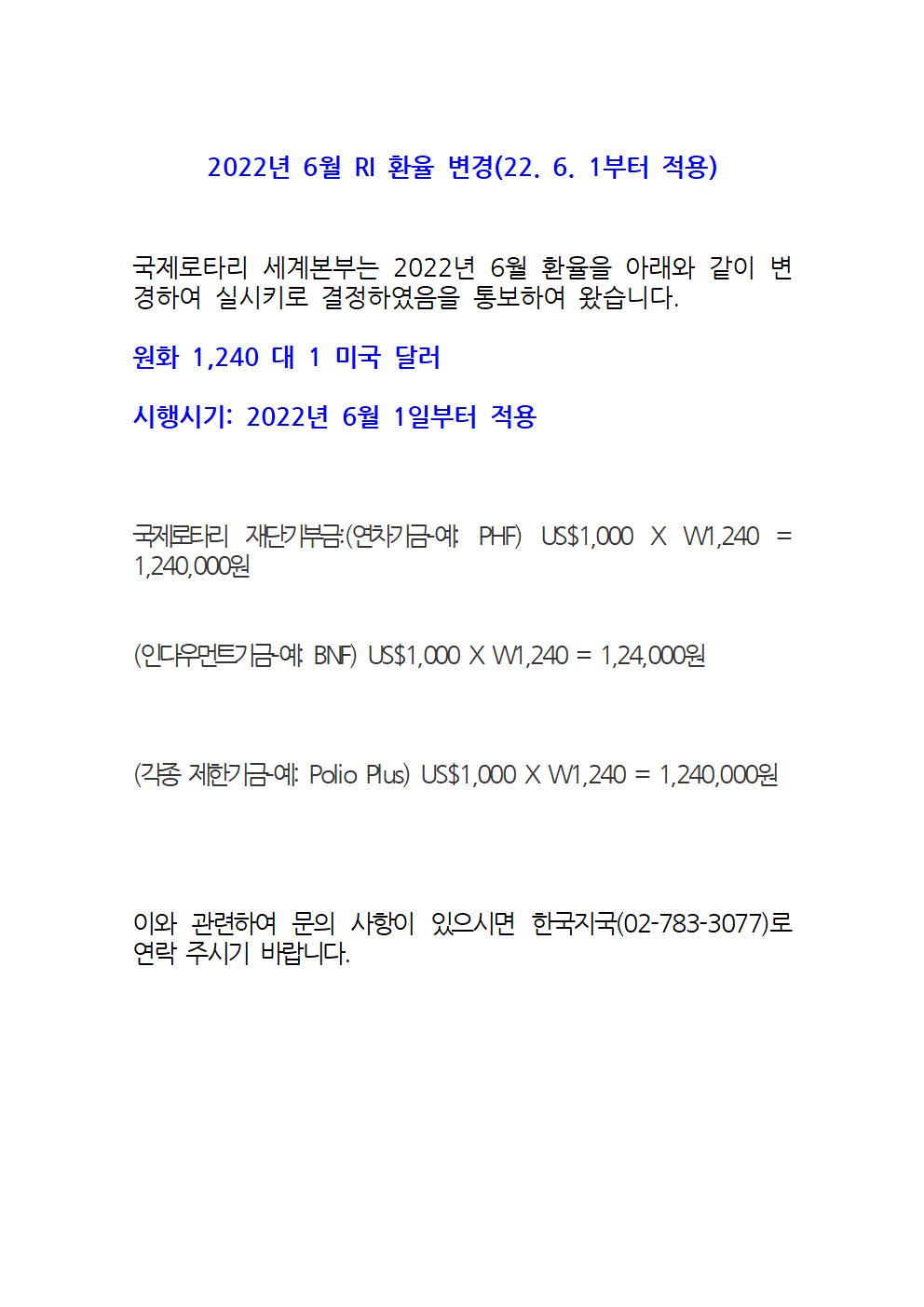 2022년 6월 RI 환율 변경(22. 6. 1부터 적용)