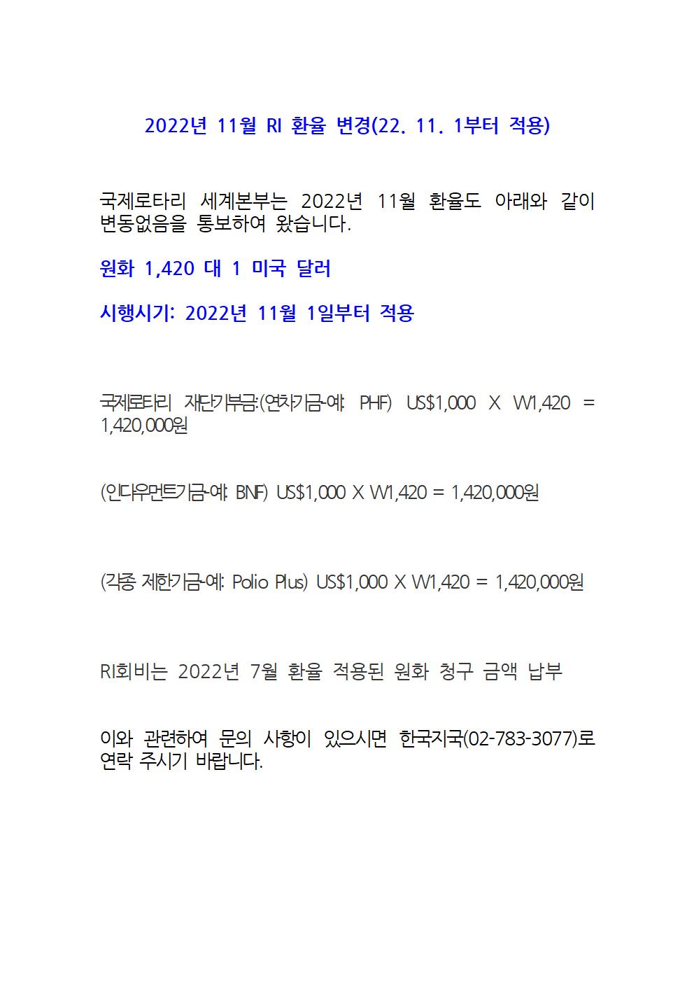 2022년 11월 RI 환율 변경(22. 11. 1부터 적용)