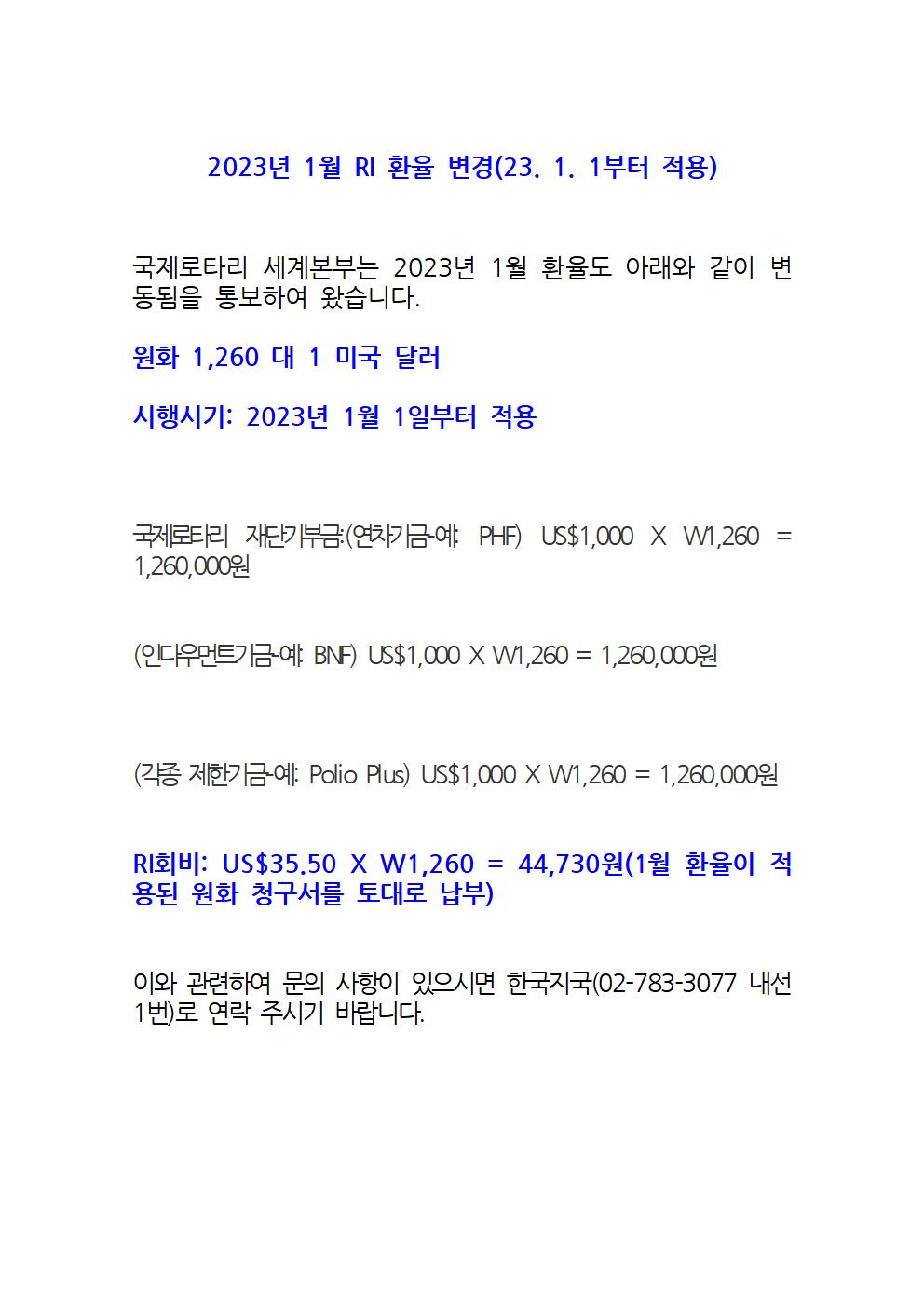 2023년 1월 RI 환율 변경(23. 1. 1부터 적용)