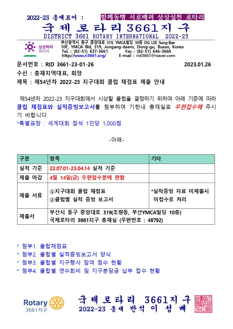 제54년차 2022-23 지구대회 클럽 채점표 제출 안내