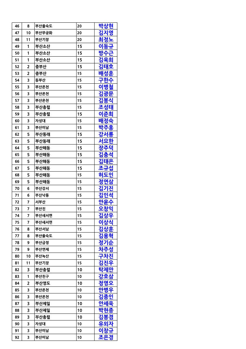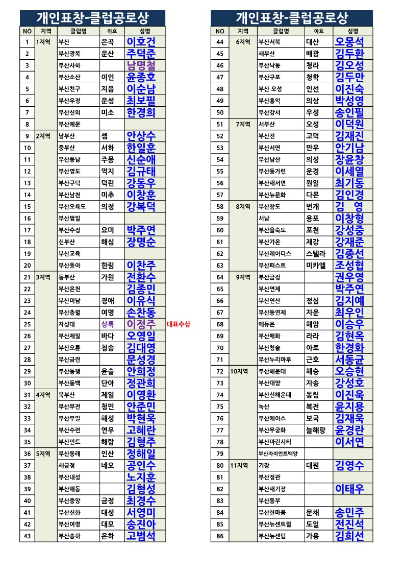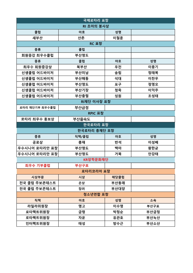 지구대회 개인표창 명단1-RI 및 한국로타리표창,공로상,개참상