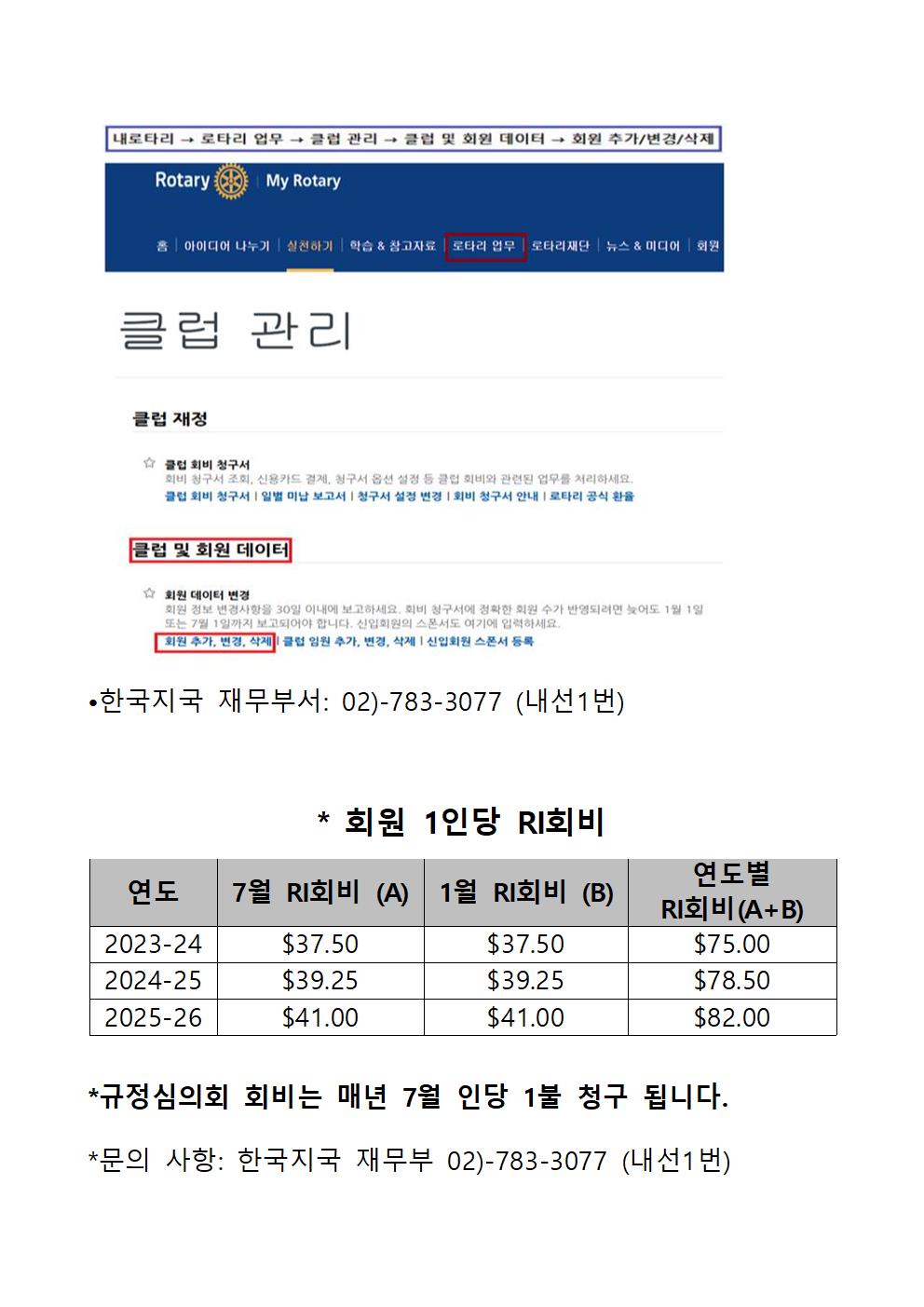 23년 7월 RI반기 회원수 보고에 따른 RI 회비 안내