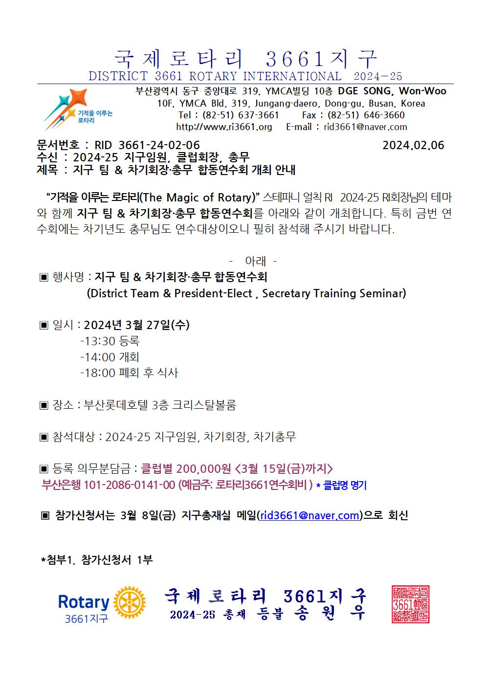 24-25 지구팀 & 차기회장,총무 연수회 개최 안내