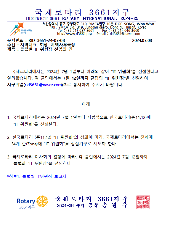 클럽별 IT위원장 선임의 건
